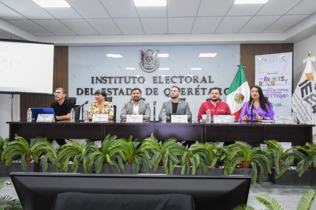 El Instituto Electoral del Estado de Querétaro (IEEQ), el Frente Queretano por el Derecho a la No Discriminación y el Estado Laico, así como Cívica, Confederación Queretana de Organizaciones Sociales llevaron a cabo el conversatorio “Avances y Retos de la Participación Política de la Población LGBTTTIQA+”.